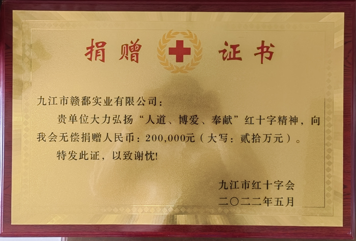 市紅十字會(huì )捐贈證書(shū)