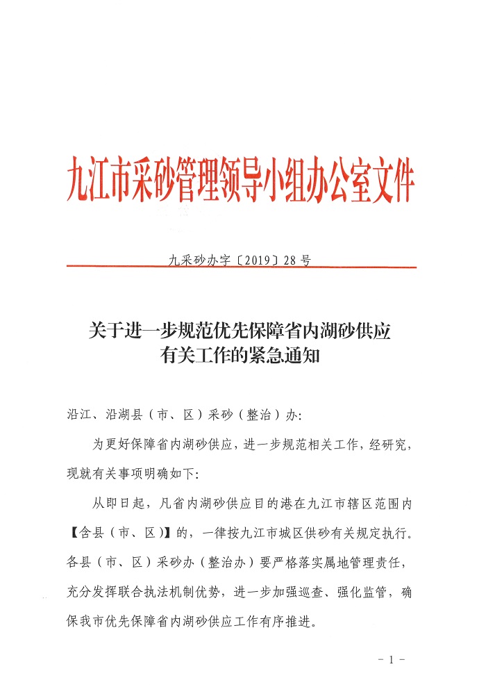 關(guān)于進(jìn)一步規范優(yōu)先保障省內湖砂供應有關(guān)工作的緊急通知