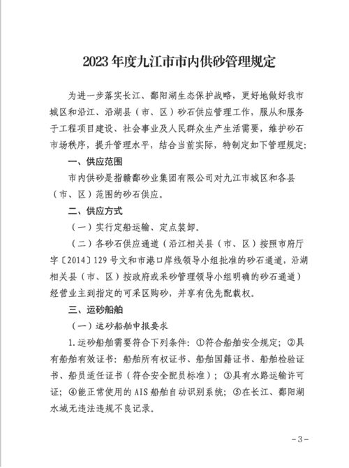 關(guān)于印發(fā)《2023年度九江市市內供砂管理規定》的通知